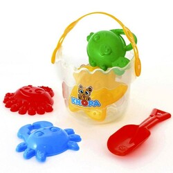 Набор песочный №252, ведро среднее с наклейкой, ситечко, совок, грабельки, формочки