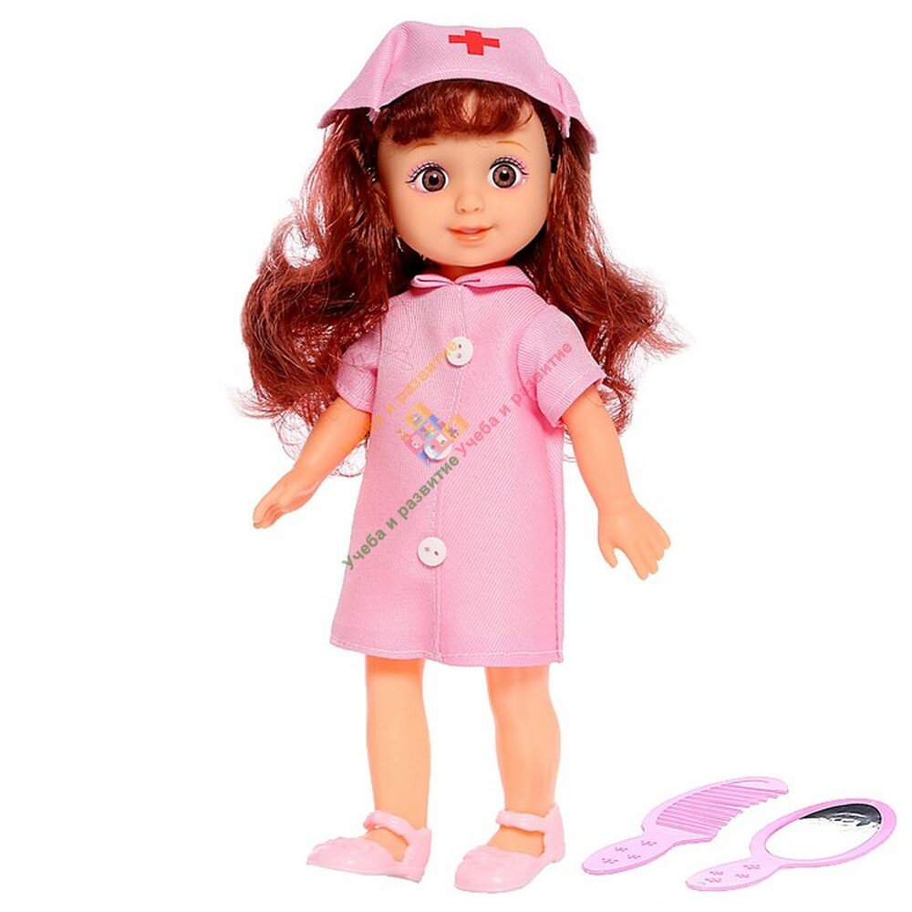 У куколки длинные густые волосы. Ребёнок расчешет их и сделает любимую причёску. Милый костюмчик создает образ врача. С таким помощником ребёнок вылечит всех своих игрушек. Малышка придумает свой наряд для куколки.