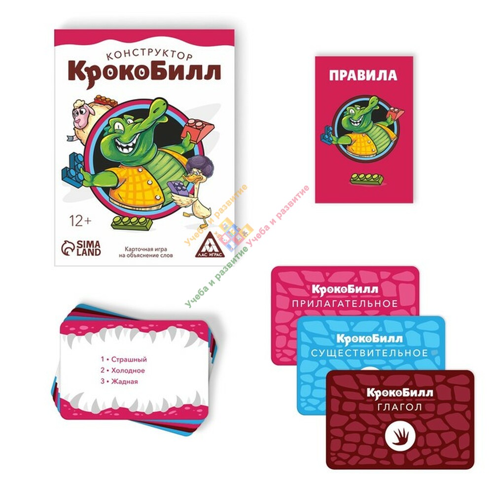 Весельчак КрокоБилл приглашает вас поиграть. Что нужно делать? На время объяснять фразы с помощью мимики и жестов. Самое интересное здесь то, что карточки — это конструктор, состоящий из 3 колод. Перемешивайте их друг с другом и получайте уникальные фразы.