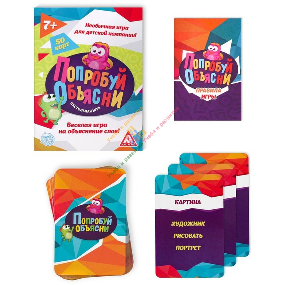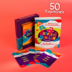 Вытягивайте карточки и устно объясняйте написанное на них. Но делайте это не так, как обычно! Во время игры нельзя использовать три слова, перечисленные на картинке. Всего в наборе целых 50 карточек. Слова на них простые, так что будет интересно и взрослым, и детям. А компактный размер коробки позволит взять эту игру куда угодно!