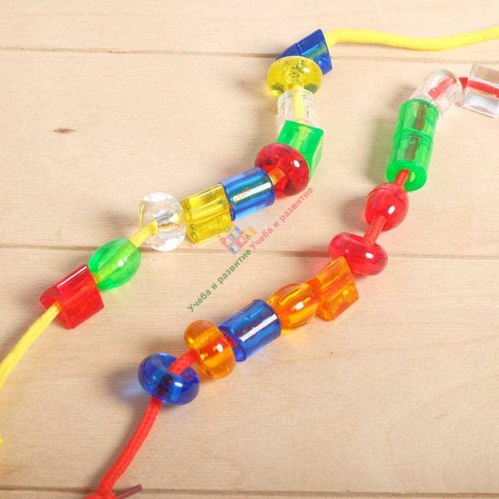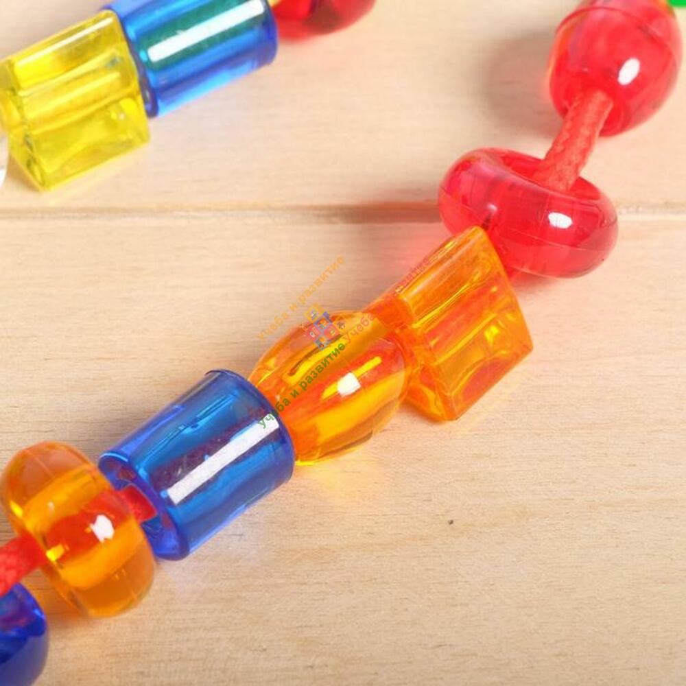 Шнуровки «Цветные карамельки» — увлекательный способ развития мелкой моторики и усидчивости ребёнка. Задача малыша: нанизывать элементы на шнурок в определённой последовательности. Такая игра научит различать цвета и формы предметов.