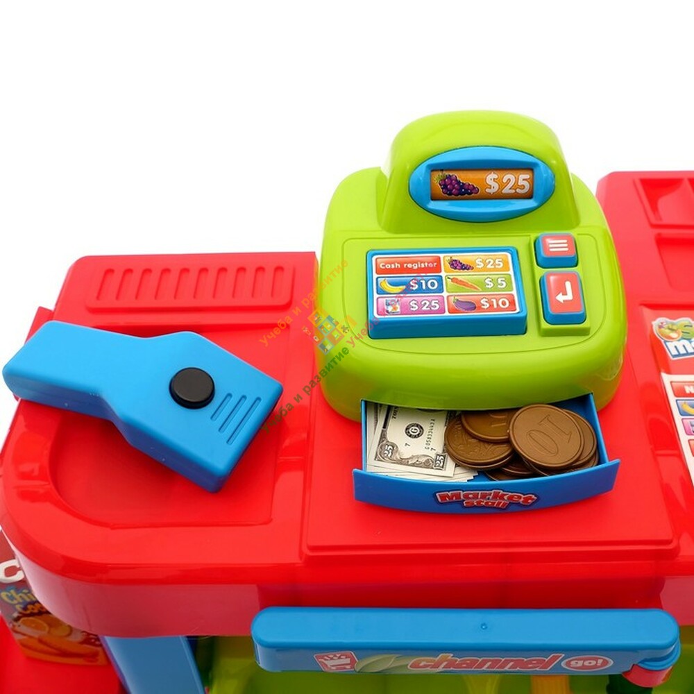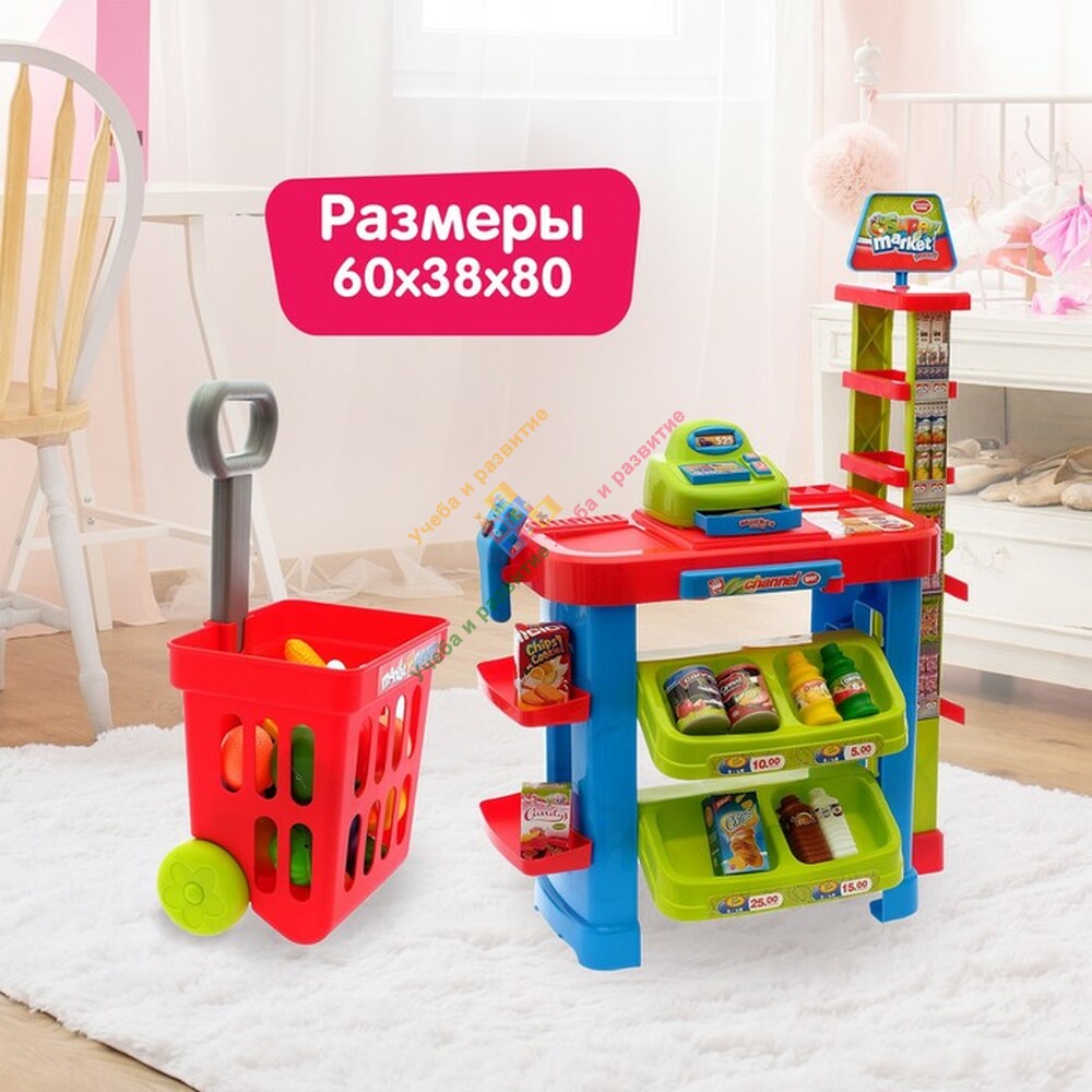 Одна из самых любимых активных детских игр — это игра в магазин. Ребёнок представляет, что он покупает на специальные денежки продукты и расплачивается за них на кассе. Всё это возможно с игровым набором «Торговая лавка».