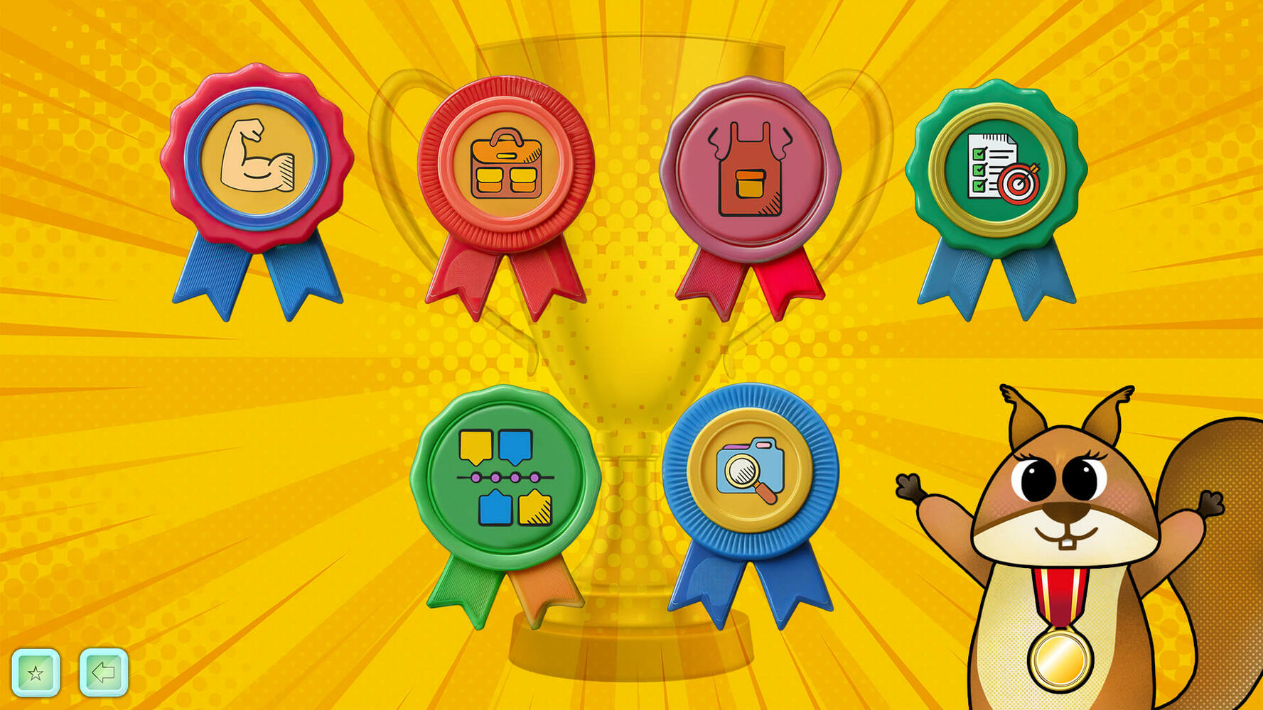 Функционал программа позволяет детям выбрать профессию, которая их заинтересовала и изучить это профессиональное направление - овладеть знаниями и навыками, а яркая, красочная современная стилистика комикса и персонаж-помощник Белочка создадут еще больший интерес у детей в данном направлении.