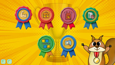 Также дополнительно представлен раздел «Значки» - это мотивационная система достижений, награждающая детей значками (не менее 6 видов) за успехи в освоении разделов.