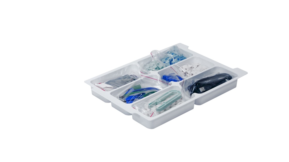 Весь набор укомплектован в пластиковую систему хранения, которая закрывается пластиковой прозрачной крышкой на защелках для обеспечения наблюдения за содержимым.