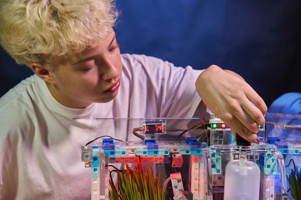 Ключевой особенностью набора является возможность использования блочного языка программирования для быстрого создания сценариев работы модели теплицы при проведении разных экспериментов.