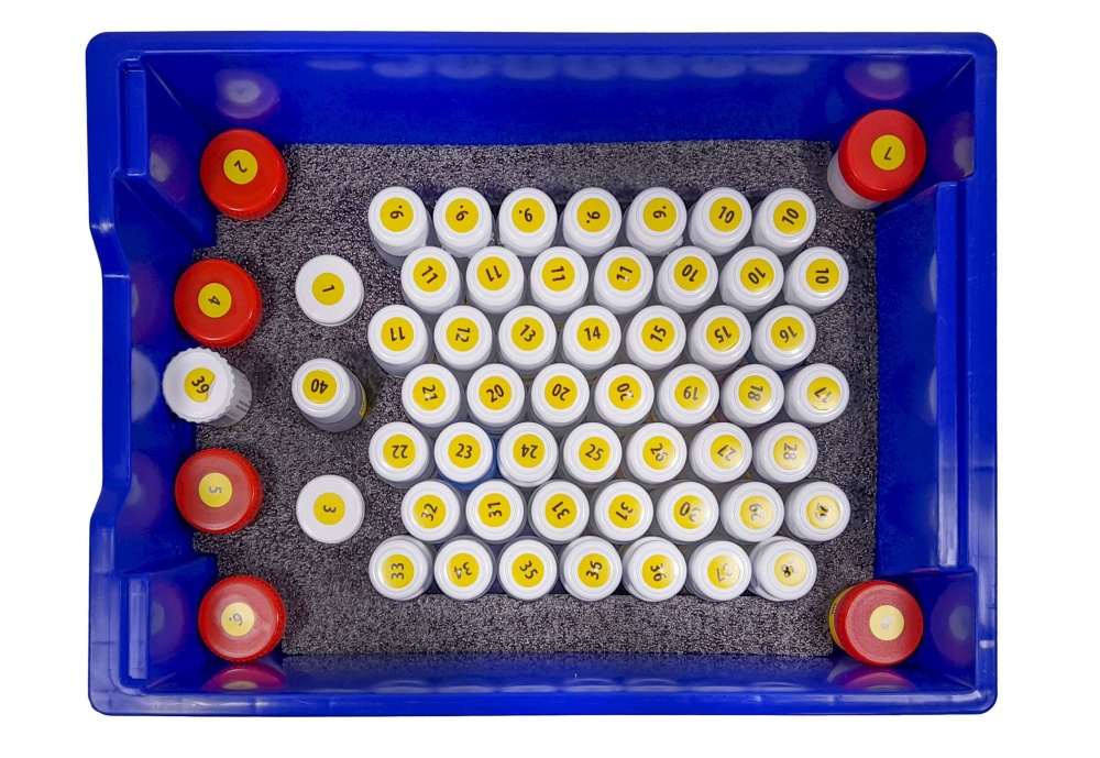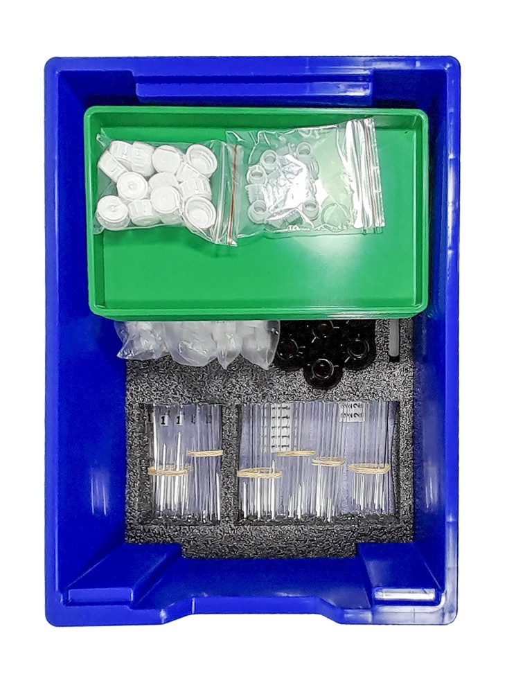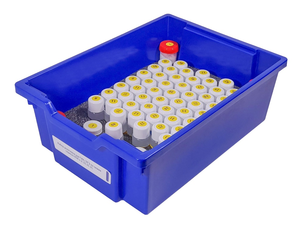 Набор реактивов укомплектован в пластиковую систему хранения с прозрачной пластиковой крышкой на защелках для обеспечения наблюдения за содержимым.