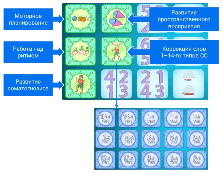 Программно-методический комплекс обеспечивает возможность проводить интерактивные занятия как в групповой игровой форме, так и в формате индивидуального взаимодействия.