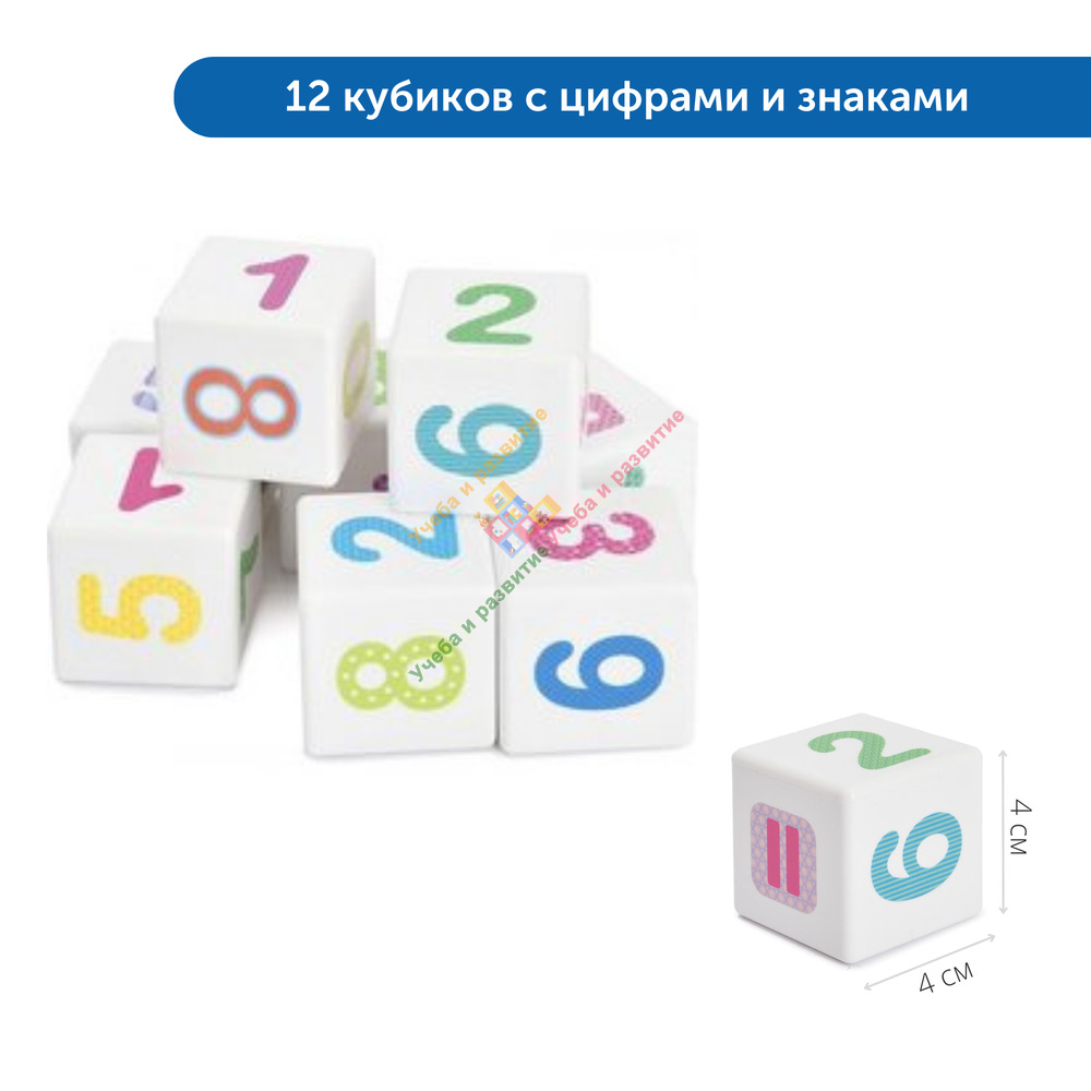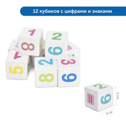 • 12 кубиков с цифрами и математическими символами
