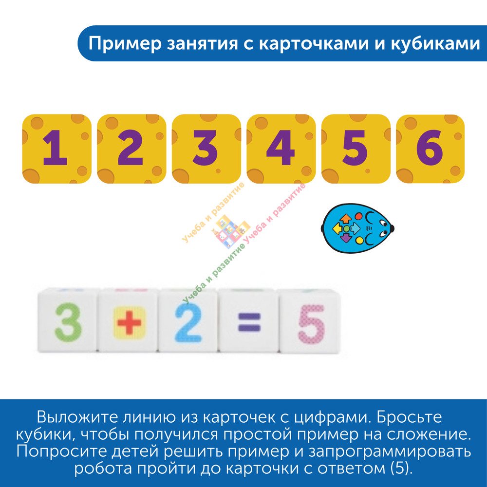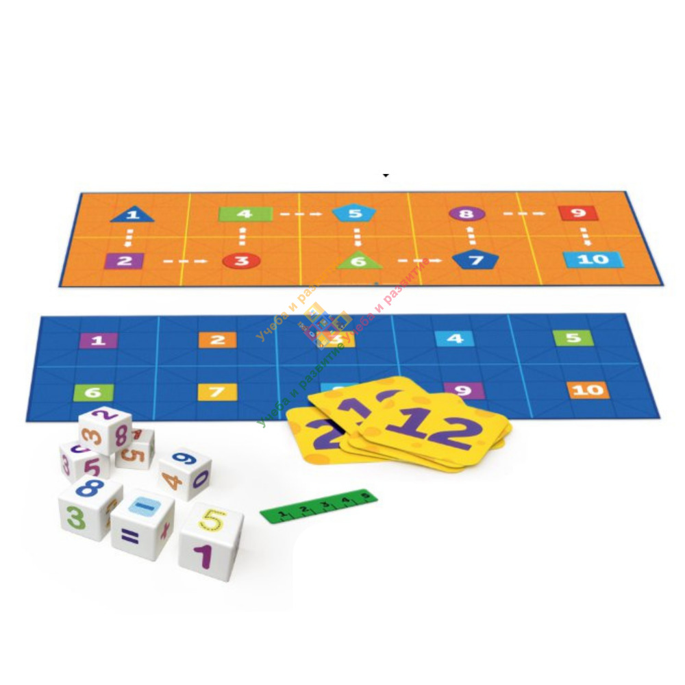 Используя двусторонние карточки, игральные кубики и математические коврики, дети познакомятся с основными принципами кодирования, сложением, вычитанием, последовательностью чисел.