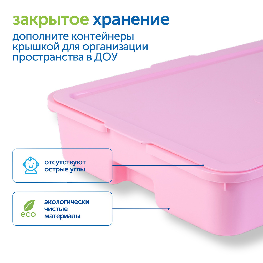 Контейнер без крышки для хранения обучающих материалов в ДОУ. Обеспечивает лёгкий доступ к материалам, делая игровую среду более наглядной и упорядоченной, стимулируя активность и самостоятельность детей.
